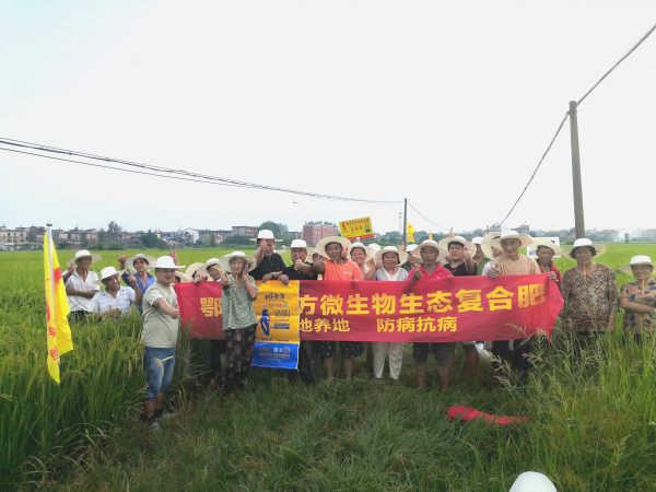 八月的江西,驕陽似火,熾浪奔襲,撫州市臨川區(qū)唱?jiǎng)P鎮(zhèn)唱?jiǎng)P村種植戶羅義泉的水稻田里,一場熱火朝天的觀摩會在此召開,當(dāng)?shù)亓闶凵毯头N植戶共50余人參會。羅義泉在唱?jiǎng)P村有約80畝水稻田,以小路為界,一邊三十幾畝用的是常規(guī)肥氯基45%(15-15-15),另一邊用的是鄂中仟金方生態(tài)肥32%(19-5-8)。對比兩邊的水稻長勢,使用仟金方的田塊分蘗率更強(qiáng),莖稈更粗壯,結(jié)實(shí)率更高,每畝產(chǎn)量預(yù)估會比對照田高150斤左右。在今年連續(xù)高溫的情況下,仟金方的抗逆性獲得在場種植戶們的一致認(rèn)可。(江西分公司 劉朋朋)