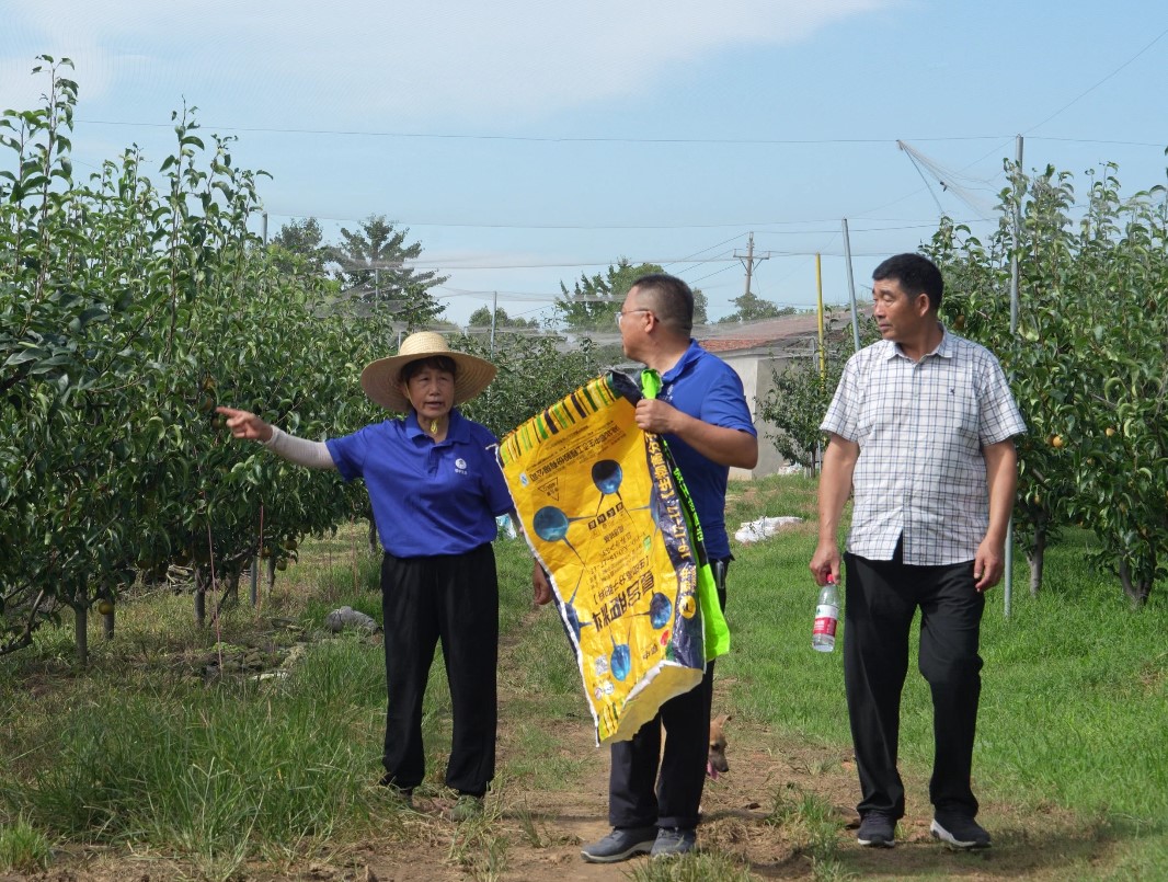 有機肥是種植梨樹的必選肥料,因為它含有豐富的有機質和微生物,可以改善土壤結構,增加土壤肥力,并提供全面的營養供應。“去年代理商推薦這個鄂中仟金方3億菌劑,我用得非常滿意。它是微生物的菌肥,不僅有NPK,還含活性菌劑、氨基酸、中微量元素鈣鎂錳鐵,用了之后不光土壤疏松,果樹的抗病能力也強,主要表現在抗旱方面,而且果子品質也好,甜度好。”