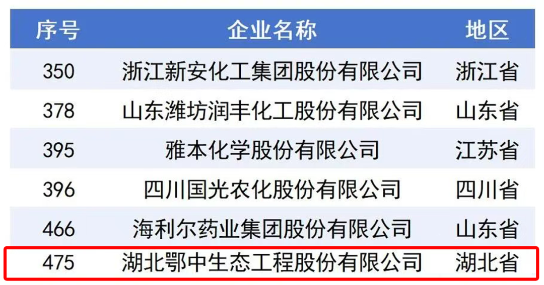 鄂中生態入選中國民企發明專利500強