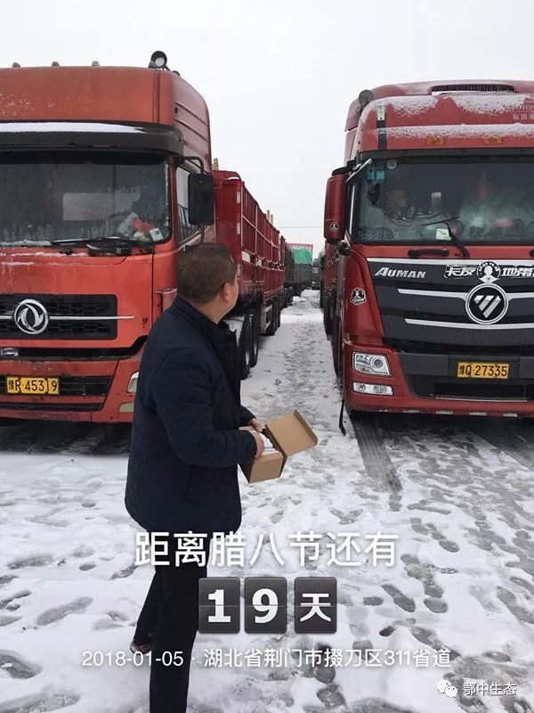1月5日,鄂中生態(tài)副總經(jīng)理朱玉軍率荊門物流生產(chǎn)基地經(jīng)理陳云等物運人員冒著凌冽的大雪,不畏風雪嚴寒,一早來到公司就開始工作了。為保障物流體系不受影響,副總經(jīng)理朱玉軍及時協(xié)調(diào)裝卸、倉儲、運輸、分撥、報驗等一體化服務。