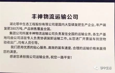 豐神物流人還在不斷拓寬服務寬度和深度,服務的拓展囊括了物流、商流、資金流、信息流等各個部分。他們制作了精美的物流信息卡片,在物流公司方圓10公里范圍內(nèi),不畏風雪嚴寒向因大雪封路而臨時停靠的貨車司機發(fā)放公司物流信息卡片。僅1月5日一天,就發(fā)放信息卡2000余張。