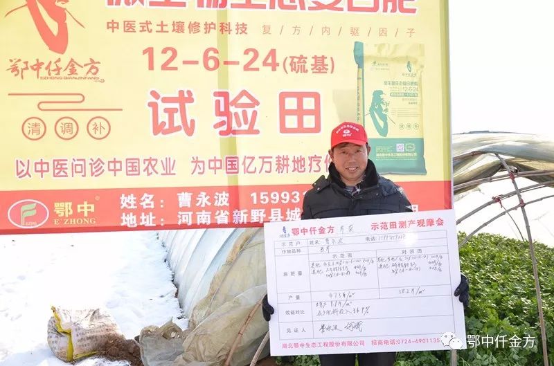寒冬凜冽,大范圍雪災,對于中原最大的無公害蔬菜基地—新野縣30萬畝大棚蔬菜來說是個慘烈的寒冬,多地遭遇凍害,作物受災較嚴重。1月11日,在河南新野縣城郊鄉袁莊村10組,鄂中仟金方0.4畝西芹試驗示范田里,正在舉行一場人氣爆滿的現場測產觀摩會,豫南分公司經理鄒應成率鄂中仟金方中醫養護隊員,攜手專營仟金方經銷商曹永波,示范戶梁東獻及當地新型職業菜農100余人共同見證了鄂中仟金方微生物生態復合肥雪災中減肥增效奇跡?,F場與新型職業種植大戶開展體驗式營銷,預定仟金方42.6噸。在如此嚴峻的雪災形勢下,寒冬中增添了一幕堅挺健壯的新綠,鄂中仟金方逆勢上演神話,用實效說話,以品質發聲,全力破解蔬菜凍害,減肥增效護航中原第一大蔬菜基地。