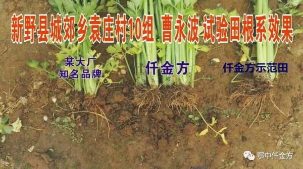 通過測產,還見證了西芹根系本身吸收能力弱,而示范田西芹施用鄂中仟金后,根系對比更粗壯,地表毛細根較多,白根較多,須根多,根系發達,使西芹根系更深,能較好地吸收和分泌物質,促進了西芹的植株生長。對比整個示范田西芹生長期、成熟期無斑枯病、葉斑病、菌核病發生,并且少打2次農藥;而對照田有少量的斑枯病、葉斑病和菌核病,鄂中仟金方富含的超活性微生物菌群(復方內驅因子)分泌的抗生素抑制了病原體,能有效減少土傳病害。