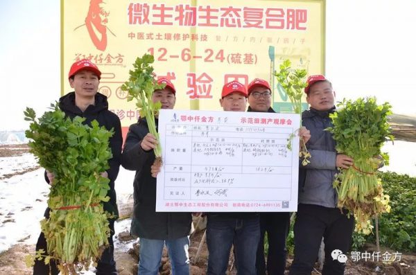 芹菜:清熱利濕,平肝健胃,可用于調味,亦用于醫藥,通常作為蔬菜食用。鄂中仟金方微生物生態復合肥減肥增效奇跡更重要的是經得起逆勢雪災和實踐的雙重考驗,在新野縣30萬畝大棚蔬菜大多遭遇凍害,鄂中仟金方西芹示范田卻在雪災中增添了一幕堅挺健壯的新綠,表現出植株更健壯,抗逆性增強,有效緩解了寒冷天氣帶來的傷害。新型職業種植大戶深深地被鄂中仟金方的減肥增產效果所折服!豫南分公司經理鄒應成表示:鄂中仟金方在2017年創造了一個又一個作物增產奇跡,刷新了一次又一次作物減肥增效高產紀錄,新野芹菜觀摩會呈現出來的不過是冰山一角!我們相信,一款產品好不好,時間是最公平的裁判,也只有真正利國惠民的產品,才能得到農民朋友的信任和支持,企業才能走的更遠!今日您予我一份信任,他日我還您一個豐收!