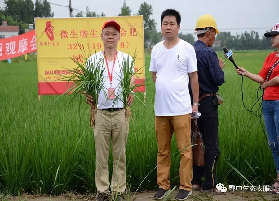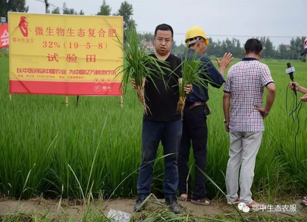 鄂中生態新產品研發部部長艾新帥、中南大區總經理杜水清、荊門分公司經理田興等在接受專家和媒體記者采訪中表示:“鄂中仟金方有明顯減肥增效提質的作用,符合當前國家農業產業政策,鄂中仟金方有明顯改良土壤和刺激根系生長的作用,說明仟金方微生物生態復合肥種地養地、防病抗病效果明顯。”示范田種植戶羅光美說:“根據長勢可估計每畝能增產150-300斤稻谷?!?/p>