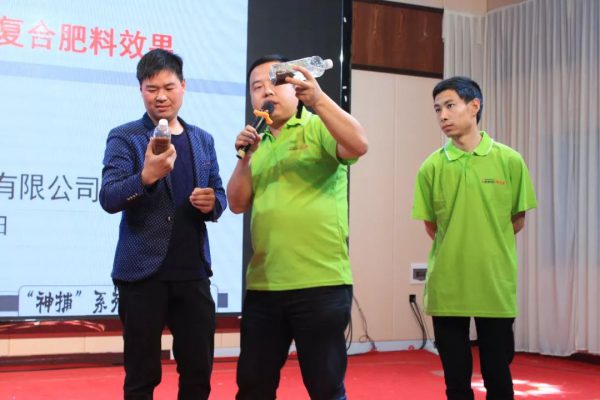 為了讓現場的觀眾近距離感受“神捕”系列增效復合肥產品,湖北浩斯特化肥有限公司首席農化師周忠雄現場為大家進行了水土加聚羧酸對比試驗演示和示范田的實例對比展示,帶領大家親眼見證了“神捕”系列增效復合肥的魔力,大家對“神捕”系列增效復合肥的效果和市場更加有信心。