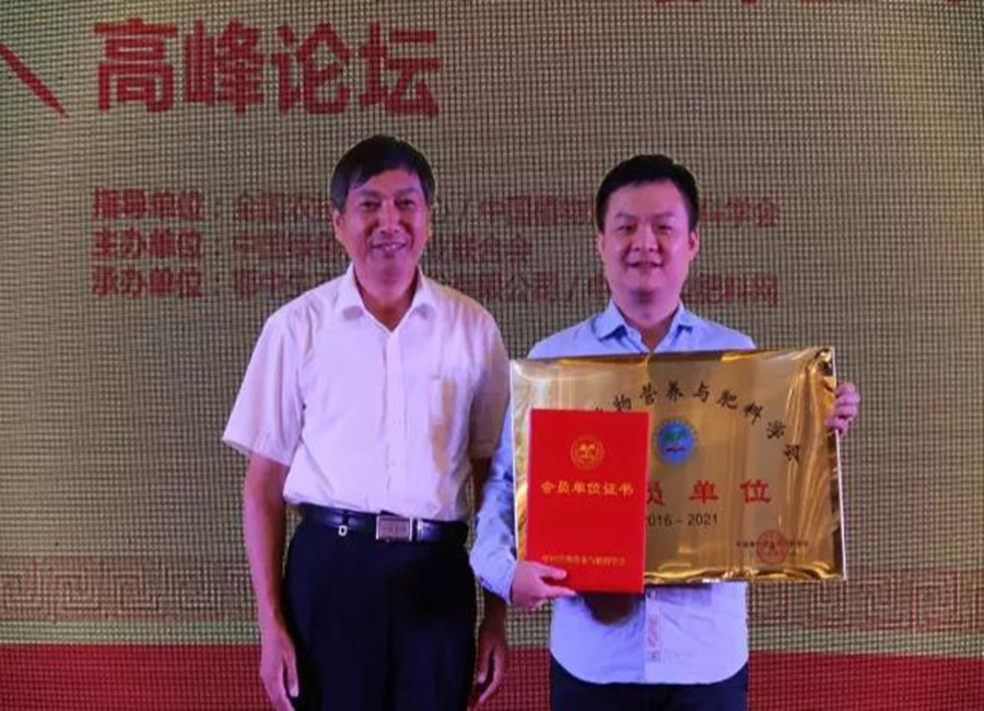 鄂中生態被授予中國植物營養與肥料學會會員單位