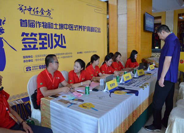 7月1日,中國的大成,世界的山水,在大成山水國際大酒店的里里外外布滿鄂中生態人的親切召喚:“首屆作物和土壤中醫式養護高峰論壇”歡迎您,遠方的客人!來源于仟金方的中醫理論基礎《黃帝內經》養生理論:即:“清毒、和調、養正”;孫思邈的《千金方》專著;對世界長壽之鄉湖北鐘祥百歲老人的長壽奧秘探研。都統統“打包”融入到簽到處,鮮活的“中醫”迎接您,長長的卷抽簽下您的到來!這些都留下了難忘的印記!