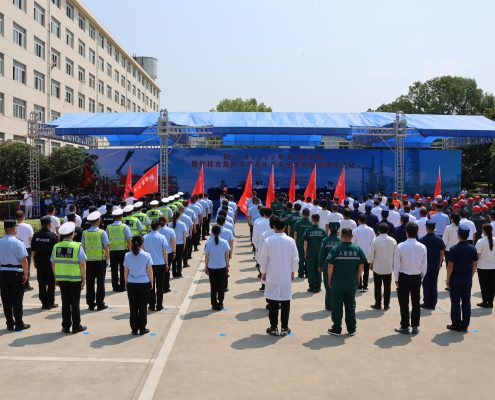 6月13日上午,荊門市2023年應急演練暨鐘祥市危險化學品生產安全事故應急演練活動在鄂中生態總部舉行,總經理楊華
